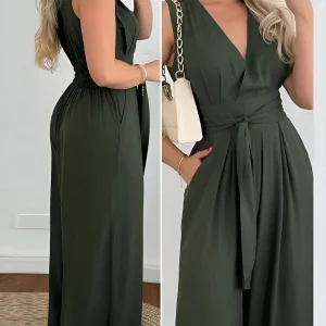 Combinaison boutonnée sans manches avec détail noué