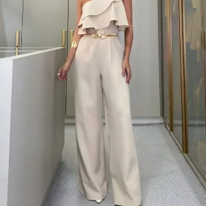 Combinaison à jambe large froncée à découpes en strass