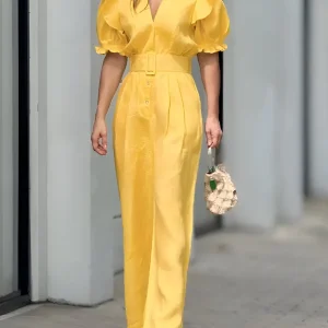 Combinaison ample à manches bouffantes et décolleté plongeant