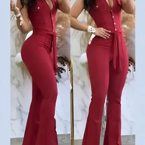 Combinaison femme été, élégante, jambe large, couleur unie, vacances, chic, sans manches