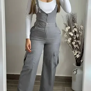 Combinaison à bretelles boutonnée et bouclée avec poche