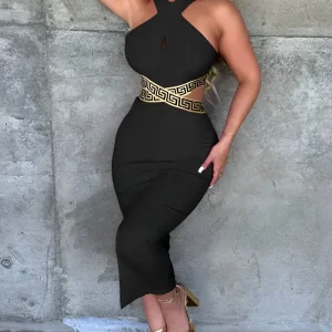 Robe moulante fendue avec cordon de serrage et décor de chaîne