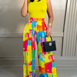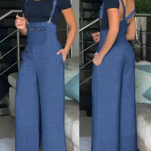 Combinaison femme été, élégante, jambe large, couleur unie, vacances, chic, sans manches