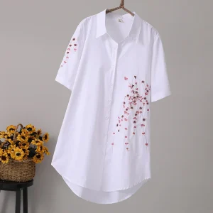 Chemisier Long Vintage pour femmes coton, ample, broderie de fleurs, manches courtes, ethnique Chic