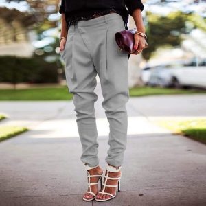 Pantalon Harem Taille Haute à Poches de Couleur Unie – Confort et Élégance avec Élise Laurent »