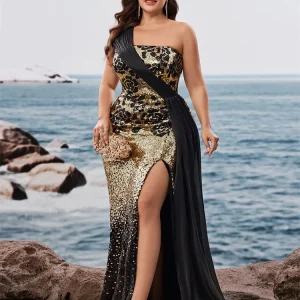 Robe de soirée élégante grande taille, épaules dénudées, sans manches, luxueuse