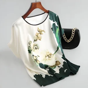 T-shirt Femme Été Imprimé Fleurs Mousseline