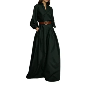 ANNA Robe de costume formelle unie pour femme, manches longues, bouton slim, col en V