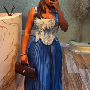 BLANCHETTE Ensemble deux pièces accrocheur, jupe plissée taille haute, imprimé frais et doux