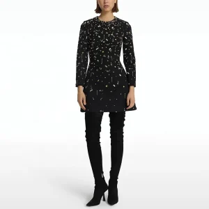 CATHERINE Robe de soirée élégante et courte à manches longues et strass