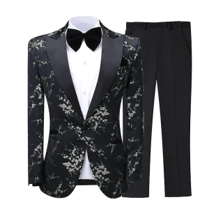 Costume 2 pièces pour hommes, motif de fleurs, un bouton, décontracté